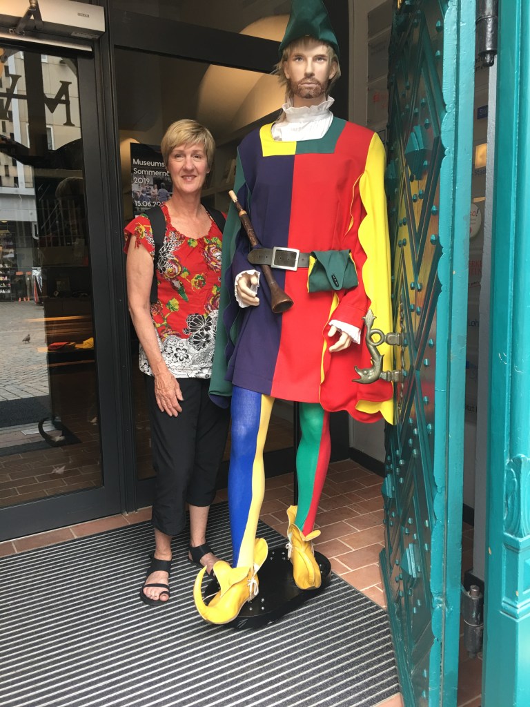 Incidentally, Heidi played the title role of the Pied Piper in 4th grade so was very familiar with the story and even remembered some words of the play (she shared the part with her friend Gail Downey). We needed a picture with the piper himself to commemorate the visit.