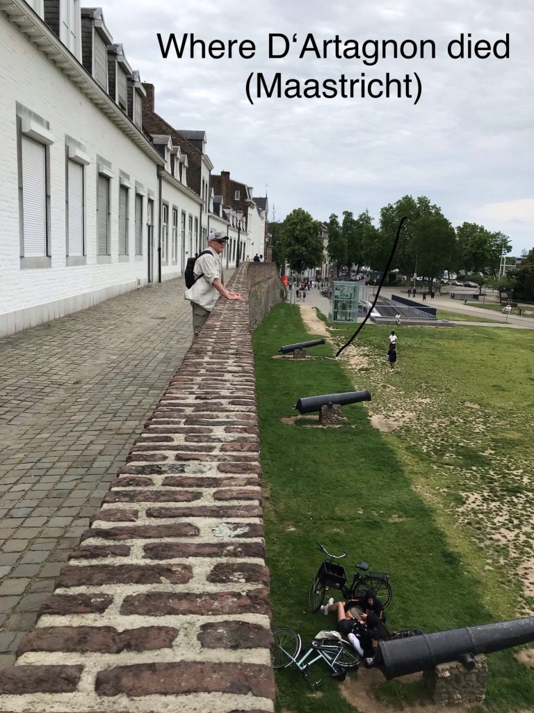 Leaving Arnhem, we travelled to Maastricht, a university city on the southern tip of the Netherlands. It claims to be the oldest city in Holland and has, of course, a very picturesque medieval town (are you seeing a theme here?) and a vibrant youthful cultural scene. BUT cool fact, this is where D’Artagnan (of 3 Musketeers fame) died in the siege to take the town on behalf of King Louis XIV. He was 60 when he died and is buried in the town. We spent the night on a barge boat, converted to a traveler’s hotel. REALLY small room (had a sink but toilet and shower shared) but REALLY neat experience. Watching Art ride his motorcycle down the ramp to park on the boat was worth the price AND it included breakfast. Bonus!