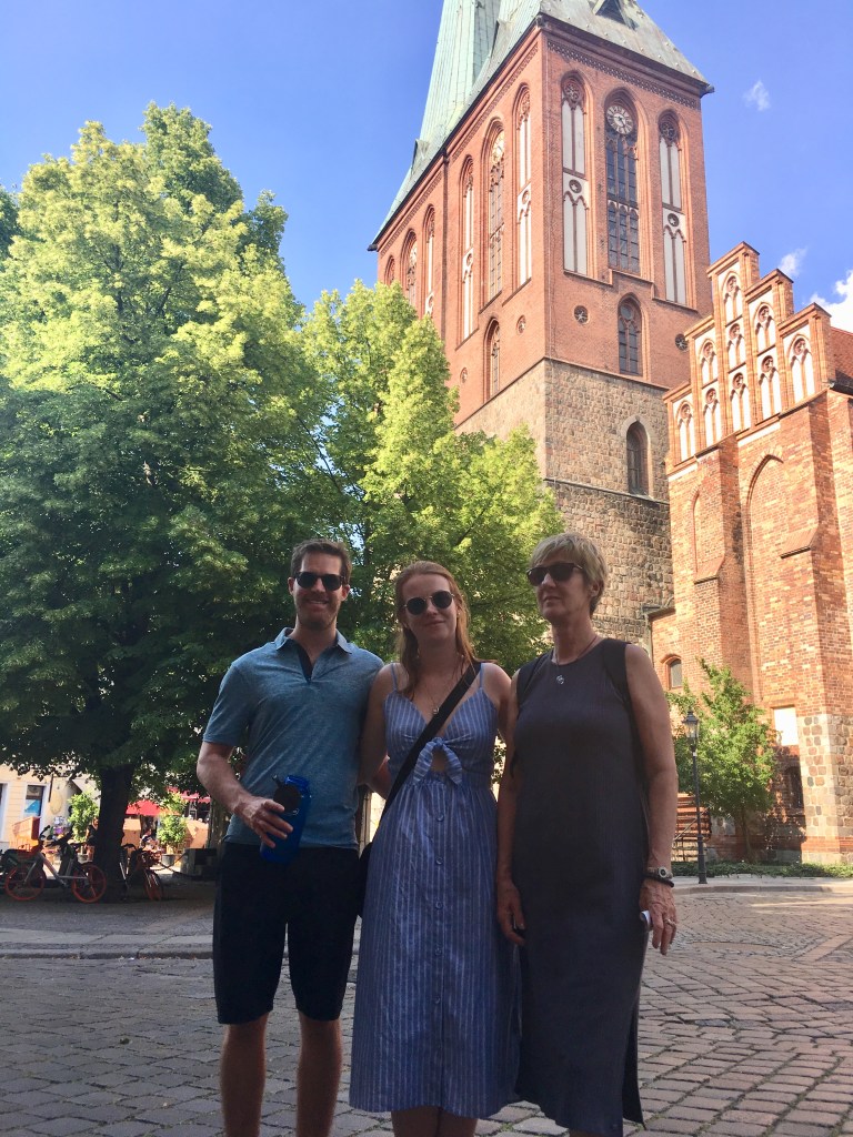 On June 2 everybody dispersed and we, as well as the girls and their partners, travelled to Berlin. Berlin is a super cool city: remarkably diverse neighborhoods, walkable and hip. The contrast between West and East Berlin is still apparent even after 30 years: the style and conditions of the buildings, the way the neighborhoods are organized and the types of shops and cafes for instance. We visited the East German Museum with Sarah and Reid: nostalgic for Heidi and a discovery for the rest. We were very happy to have had the opportunity to reconnect with another of Heidi’s distant (though beloved) cousins, Svenja. She very generously hosted the girls and their partners for their days in Berlin and also took the time to show us the gritty Kreuzfeld neighborhood for a canal-side beer garden and fantastic dinner on a boat. While the girls stayed in the city centre, Heidi and Art enjoyed staying with her aunt and uncle, Marleen and Hans, in the lovely suburb of Spandau, on the river-side of the Havel.