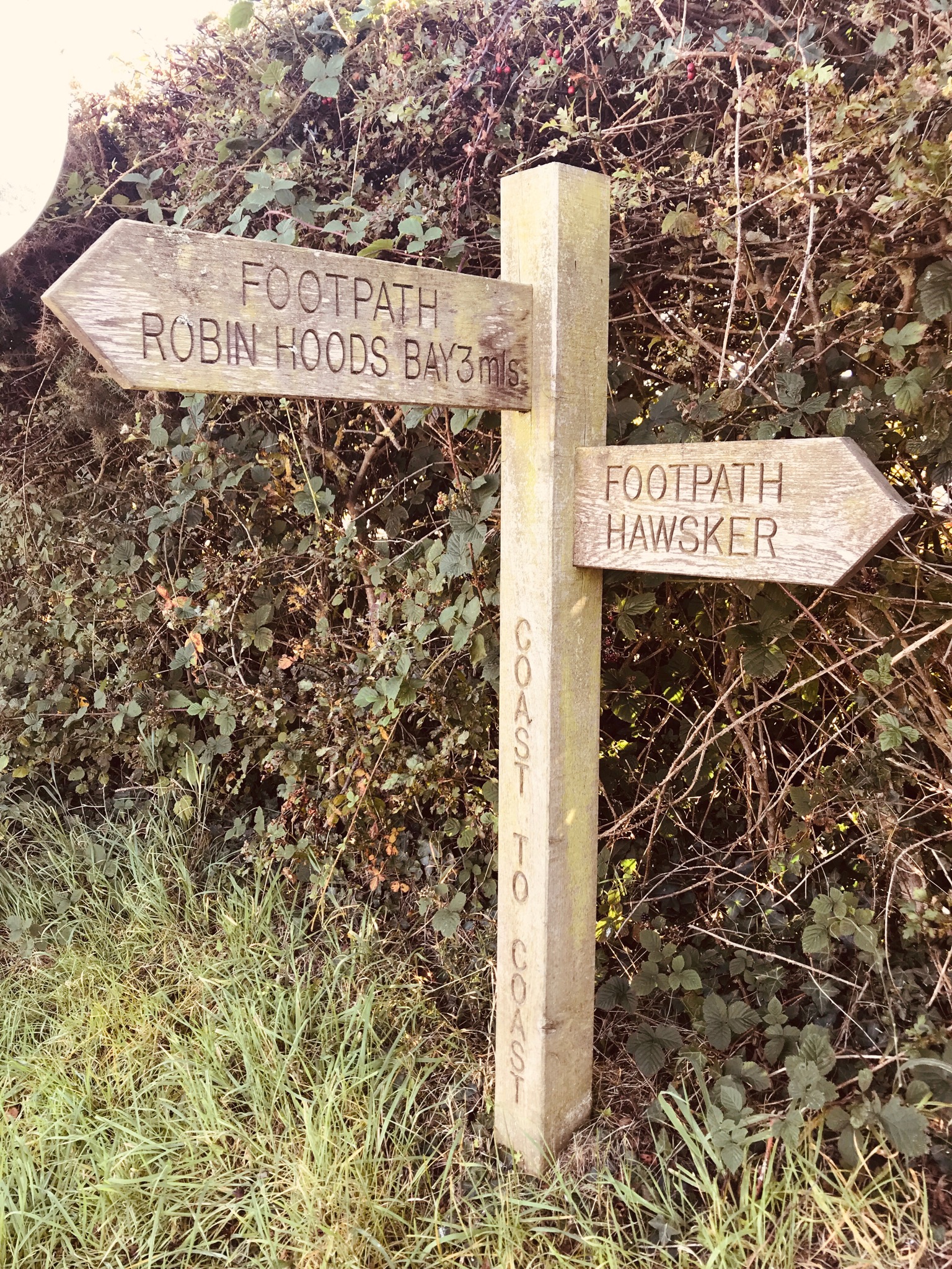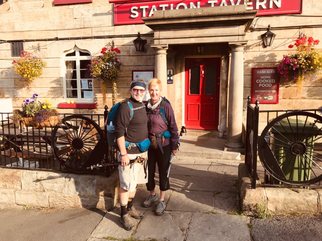 Today we woke up in the lovely village of Grosmont. This town is most popular now with steam train aficionados. There is a museum and works yard and apparently the steam engine that pulled Hogwarts Express in the Harry Potter movies was from there. After yet another FEB (Full English Breakfast), we tied our shoes and grabbed our poles and set out for our last day of walking Wainwright’s Coast to Coast Trail. It was not going to let us off easy as the route out of town immediately had us hoofing it up a 33 % grade with no let-up for 2 miles! This would have left us completely “knackered” a mere 2 weeks ago but both of us have become noticeably stronger in that time. And I should hope so. I am certain no pounds have been lost due to those FEBs, pub food and my new favourite drink, Guinness and Black (a stout with a shot of black current syrup. Really) but our muscles and stamina have increased with every one of those 192 miles!