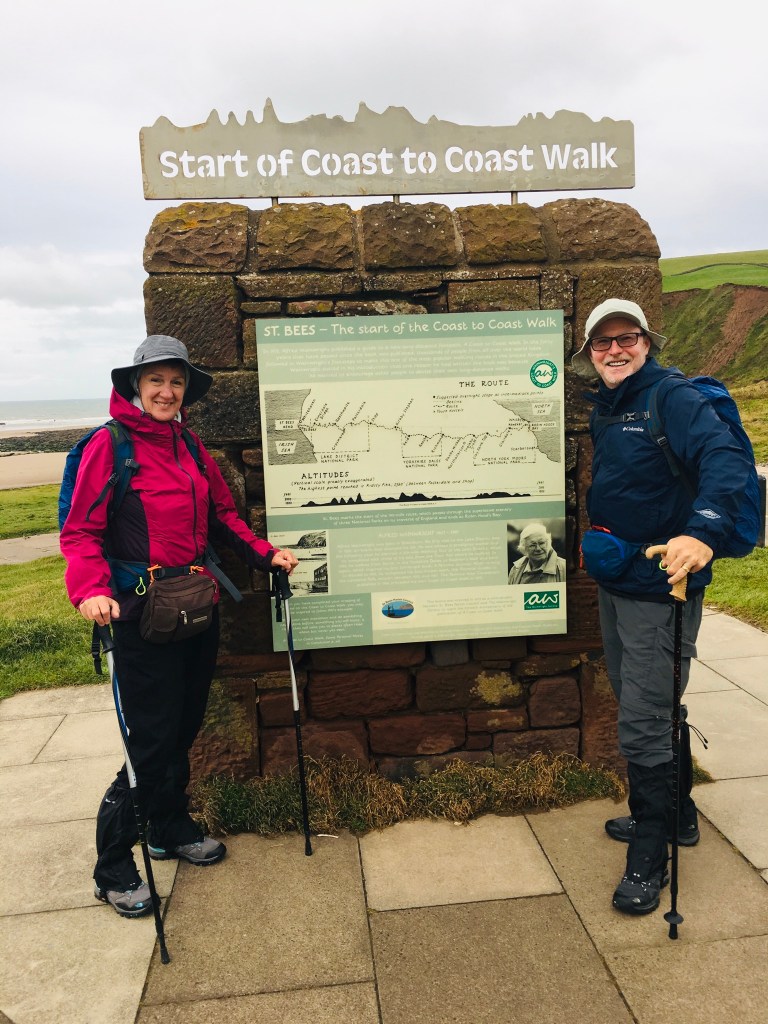 As I lie here on my bed in our Inn at 6:00 pm, the only thing keeping me awake is the excruciating pain in my thumb, feet, knees, hips and back! This Coast to Coast Walk (C2C) may be a bit of a challenge haha! The day started out beautifully, though with a slight rain, in St Bees as we dipped our boots in the Irish Sea and collected a rock from the beach to carry with us and deposit at the end of our journey in Robin Hoods Bay on the east coast. This is a tradition amongst C2C walkers of which there are approx. 10,000 each year. This had me envisioning truckloads of rocks regularly being sent back to St Bees lest the beaches be depleted!