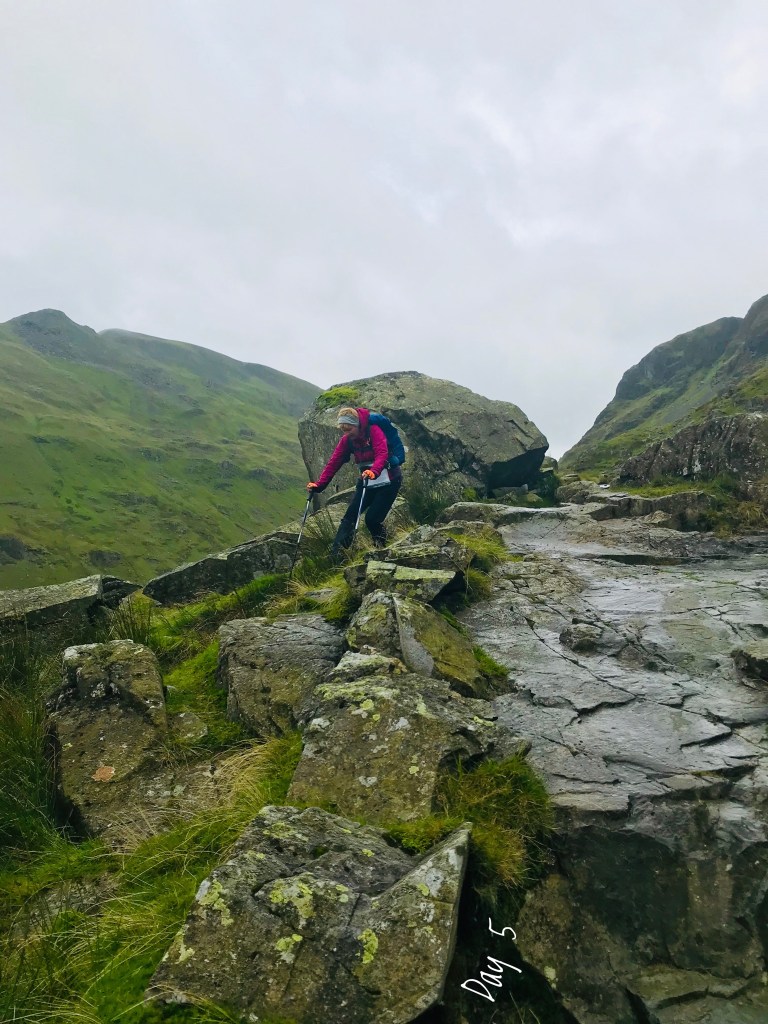 Day three was forecast to be awful and to make matters worse, both our walking friends, the Canadian sister, told Heidi she shouldn’t walk this route due to the high “scramble” needed to get up one face. The meaning of scramble was a granite face that was very sheer and had loose bits to make things trickier. Even in dry weather this route is bad for people afraid of heights, but on this day would have frozen Heidi because of the wind and rain. So Heidi caught a ride with the Canadian sisters and I walked the route.
