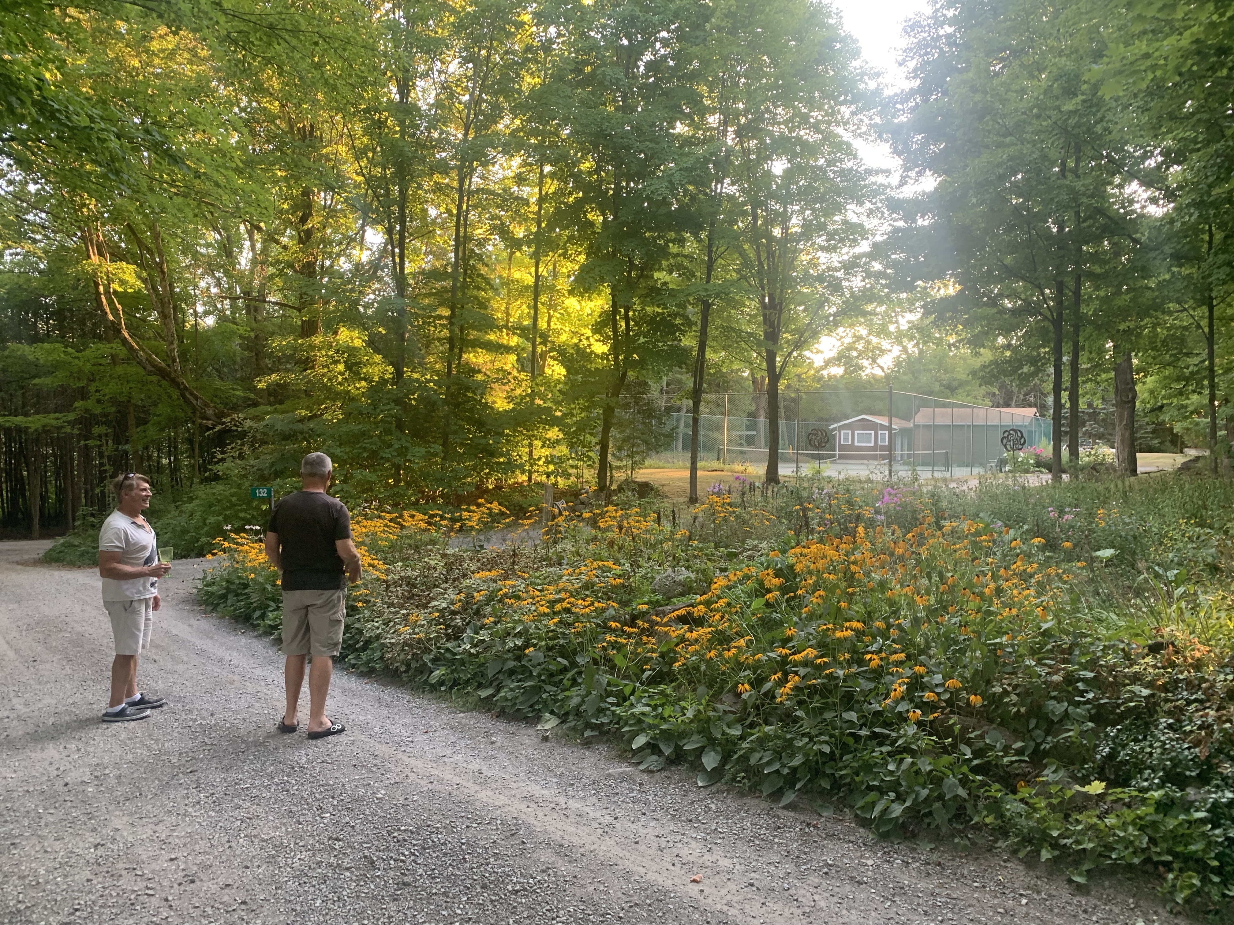We travelled east to a friend’s cottage in the Kingston area, to a small town called Tamworth on Beaver Lake. Our friend Bob has a condo in the building Pomaria where we live in Vancouver. Before leaving for his cottage in the spring he told us if we were in the area to drop by for a visit. We called Bob when the rig finished getting fixed and he said he was free and to come by on the way to Algonquin Park. I had a vision of Ontario cottages that was blown up as we rolled onto his property, past his nine-hole golf course and tennis courts. We agreed to refer to his property as the Cameron Country club from here on in. Bob grew up in this area but spent the better part of his life away from family pursuing his career in the oil & gas business in Alberta. He bought this piece of paradise and few years back and really threw his back into making this the ideal family escape and now welcomes friends and family throughout the season. We had a great dinner outside overlooking the lake after enjoying drinks on the dock. The next morning, we arose and enjoyed nine holes together. Bob takes care of all the fairway and greens maintenance on top of caring for the gorgeous gardens and 5 more acres of lawn down by the lake. I have no idea how he finds the time to entertain or enjoy himself, but he assures us he does.