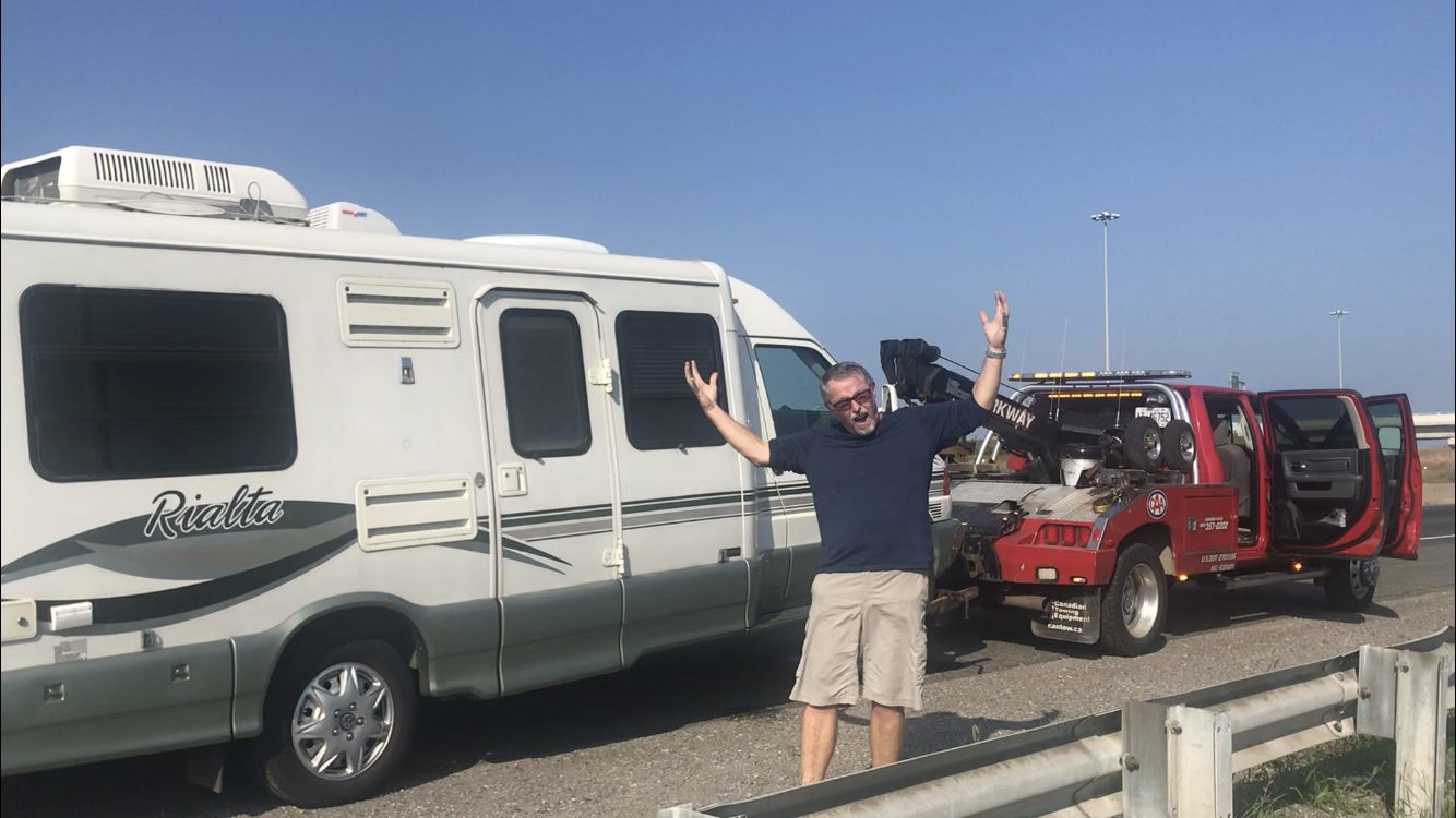 Our luck was with us through the trip so far, Klara had been running like a charm, but our luck was about to run out. After leaving the farmland of central Ontario we jumped on the Queen Elizabeth Parkway in the direction of Niagara Falls. We had just seen another Rialta (the make of our motorhome) after passing Hamilton and exchanged waves as we sailed along. As I signalled to pass, I put my foot on the gas and all that happened was my engine revved up. I shifted gears and still nothing, but luckily had a clear path to pull off to the shoulder. We are members of a Rialta User Group and I immediately posted our problem to the Facebook group and withing 10 minutes received an answer from our technical guru Brad. He asked me to check under the vehicle for transmission fluid, and sure enough there was an ever-growing puddle underneath. I had installed a transmission cooler just before leaving home and Brad seemed to think that was the root cause, clamp or hose failure. Here is where my luck kicked back in, as I had broken down about 20 minutes away from Hamilton, where my cousin Tony and his family live. I emailed Tony and it turned out that he was on vacation and at home. Tony also had a mechanic he trusted all the family cars to, so I arranged for the auto club to tow Klara to his place. As this was on a Saturday, we were going to wait until Monday earliest. Tony met us at the mechanics and then brought us home for the weekend. His wife Judy and son Andrew were still away at the Cottage, but we got to visit with their daughter Gabrielle and sons James and Michael. We had intended to see Tony and family later on in the trip but our hiccup brought us together sooner than expected and allowed us to meet Gabrielle, who would have been back at McGill had we not broken down. Tony lent us his van and we visited Niagara Falls and Niagara on the Lake on Sunday and Tony and I were waiting for his mechanic when the doors opened on Monday. He made no promises about how long the fix would take, but armed with the information Brad, the technical specialist from the used group shared, Tony’s mechanic (also Brad) promised to bump some of his other clients to look into our issue. By the end of the day the problem had been identified and fixed, (hose failure resulting in losing 90% of the transmission fluid). A huge shout out to Tony, Judy and family for making us feel so welcome and bailing us out in our time of need and to the two Brads who got us back on the road so quickly.