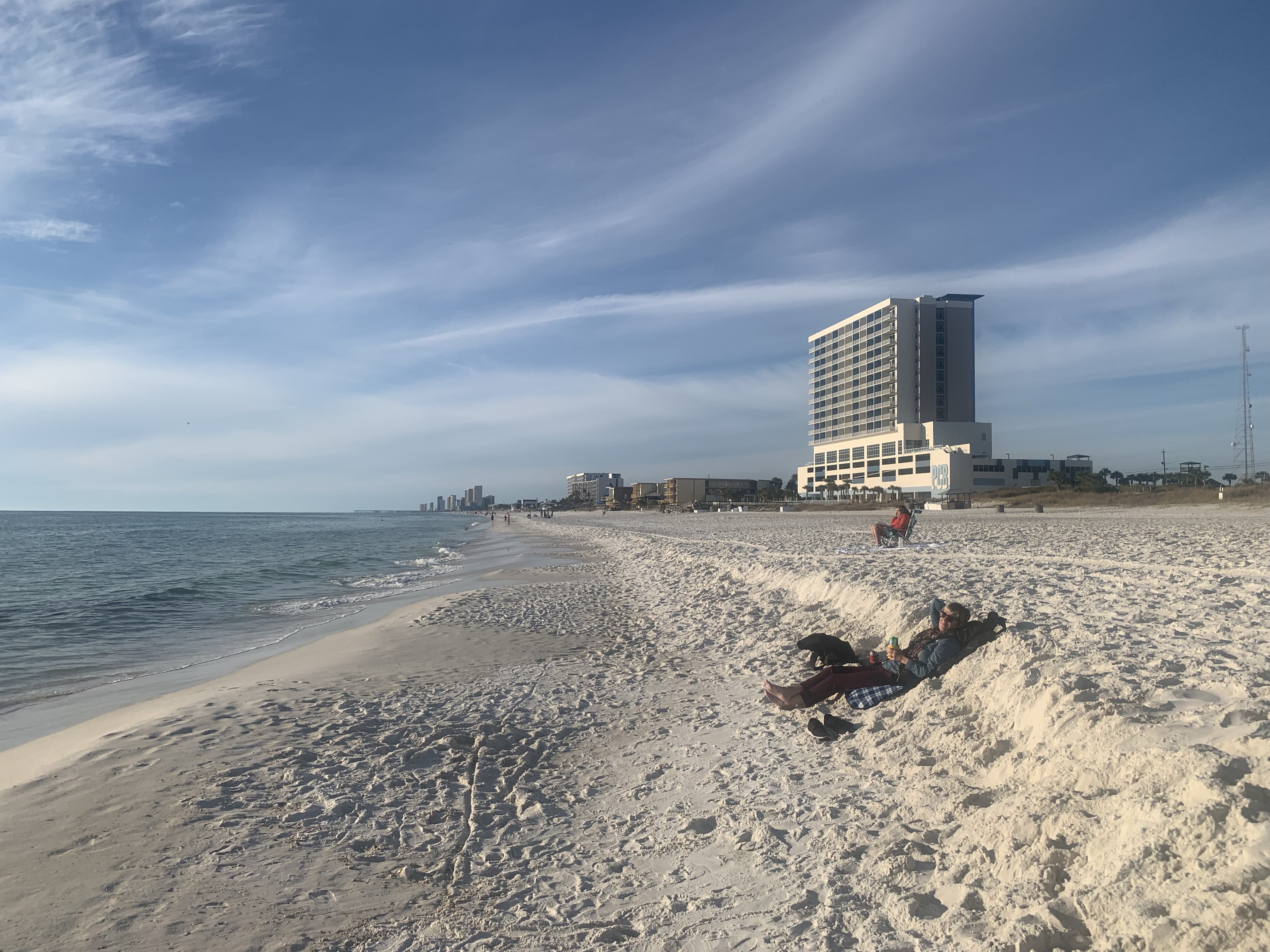 I glanced down at my speedometer when leaving Savannah, and it struck me that we have now traveled over 10,000 miles (16,000 kms), since leaving home in August. We are now becoming weary of traveling day after day and longing for the warm weather and beaches of Mexico, which still lies 1,500 miles (2,400 kms) away. We cut across Georgia and headed for Panama City Beach FL with the hopes of getting some warm weather. We checked in to a campsite across the street from the beach and got set up for a couple of nights to relax. The weather was in the 20 degrees Celsius range, and we spent one lazy day on the beach and exploring the little town of Panama City Beach.