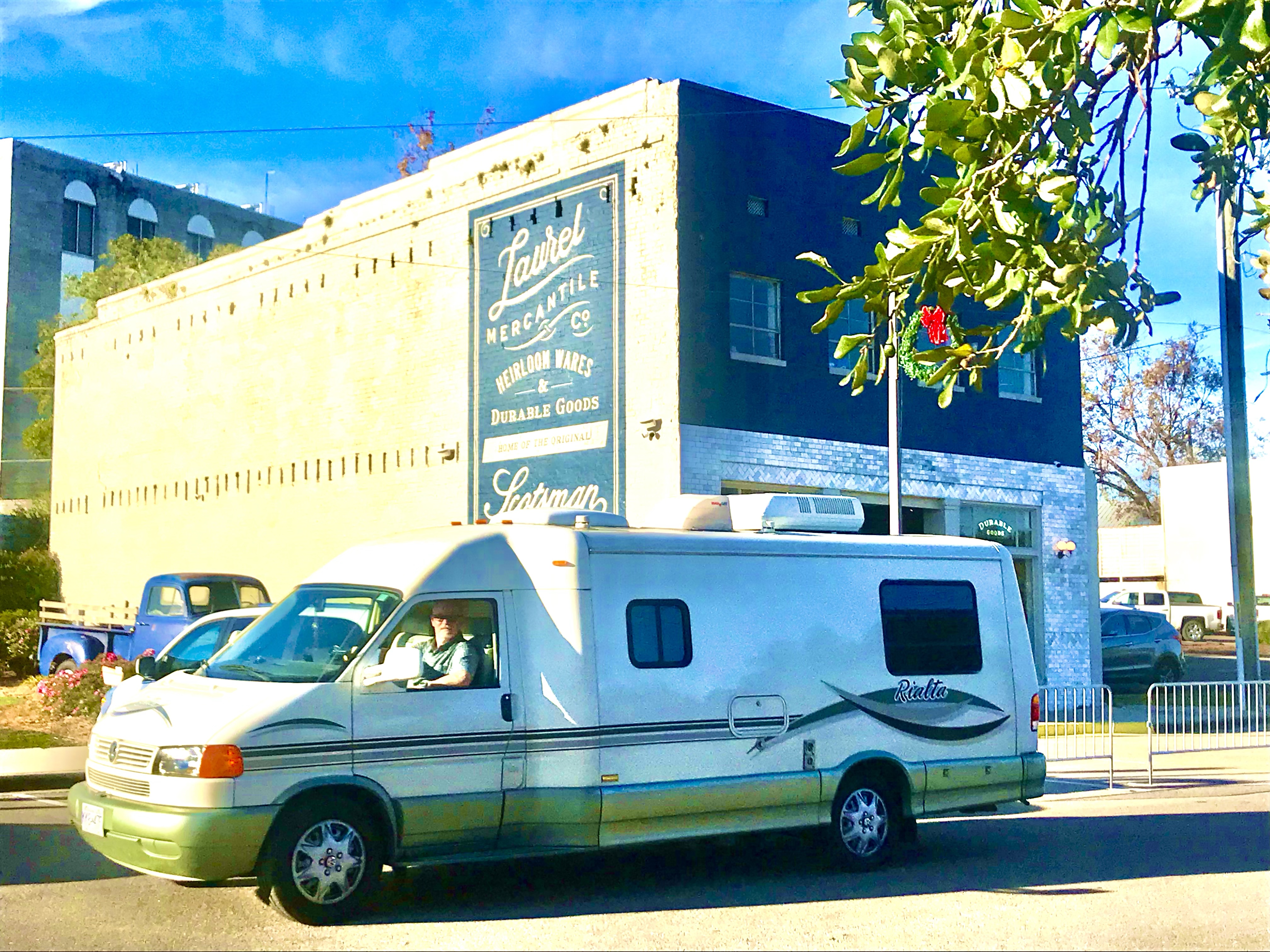 Our next destination was Laurel MS. We are huge fans of the HGTV television show Hometown, a show featuring a young couple who have made it their life’s work to renovate old historic homes for people looking to move to their little town. Not only are the couple charming but the work they do is fascinating in that they try to use materials harvested in the renovation to keep the character or to make furniture from the recovered lumber. Laurel at one time was the centre of lumber mills and the area is still known for its white pine forests. Like many small towns in America though, as the factories and mills closed, it fell on hard times. It is truly amazing the kind of notoriety that this television couple had brought their hometown, as the tourist business is booming. We stopped in at Ben and Erin’s store, called Laurel Mercantile, and picked up a walking map of the city so that we could see the homes that we had viewed on their show. We spent the better part of a warm day walking the neighbourhoods, trying to pick out the homes that we could recognize from the show, which was really fun. We ate lunch at Erin’s favourite restaurant and grabbed an ice cream cone from Ben’s favourite ice cream shop. We stayed at a campsite on a lake just outside Laurel and we were the almost the only campers, a sign that the season was over.