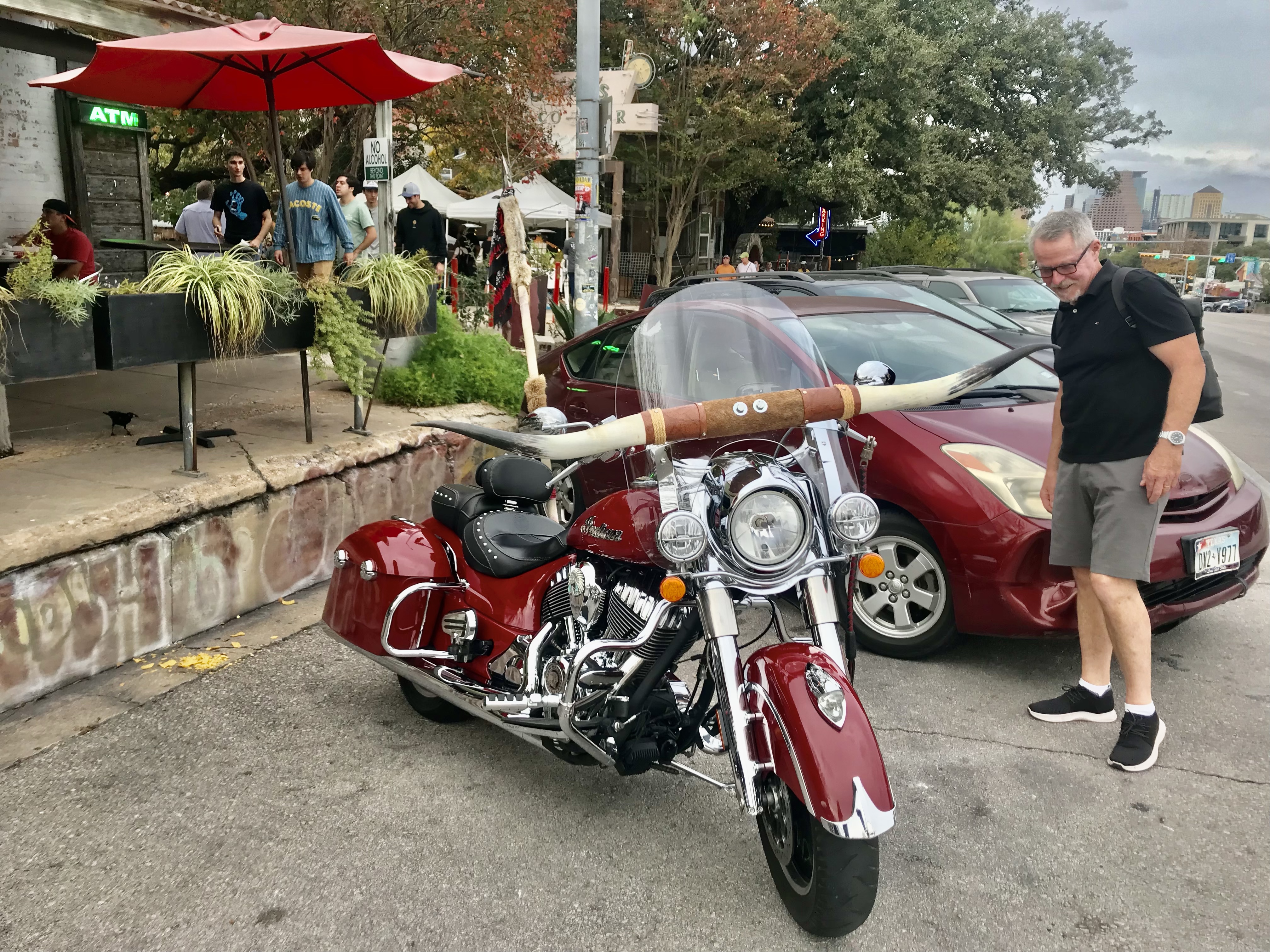 Susan was kind enough to give us a guided walking tour of Austin the next day, following the river through the downtown core and out along busy Congress St where we stopped for a Tex-Mex lunch, a few margaritas and to listen to some live music. And no visit to Austin would be complete without a visit to a cowboy boot store. Heidi and I marvelled at the variety of boots available and discovered that you can pay as much as $12,000 for a pair of cowboy boots in this store. And stepping out of the store we saw something only found in Texas, a motorcycle decorated with a set of Texas Longhorns.