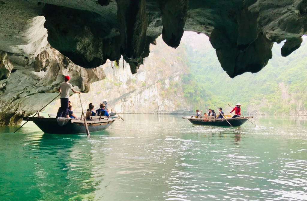 Due to the intimate size of the ship we quickly got to know everyone on board as we shared kayaking, swimming and bamboo boat trips through limestone caves. Everyone felt we got good value for our money, even though it had a touristy feel. We initially complained about the early wakeup call on our second day, but in retrospect thankful to be the first boats through the limestone caves. These bamboo boats have been used for hundreds of years to moving people and goods through the region, but today it was just us. The captains were young and old, women and men all standing on the rear of the boat like Vietnamese gondolas.