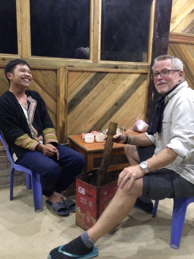Sumai and her husband San’s home was larger and more modern, built to accommodate homestays for her tours. She is the main breadwinner, but her husband stays busy doing most of the cooking, tending their hobby farm, chasing after their two young boys and growing orchids which are sold in the flower markets in Hanoi. We helped make dinner including making spring rolls and prepping all the vegetables for San. We had a 6-course feast for dinner with the family and had to push away from the table we had eaten so much. I had mentioned earlier the prowess of the Red Dzao tribe with herbal medicine and we experienced this after dinner. One of the fires always burning in the Red Dzao house is boiling the herb mixture for their baths. Their herbs are added to water and boiled all day to extract all the goodness. They then draw water and transfer to the tubs, (much like ½ wine barrels) and more cold water is added. We were invited to bath and of course we jumped at the chance. I don’t remember ever being so relaxed after this soak and slept like a baby waking miraculously to no sore muscles whatsoever.
