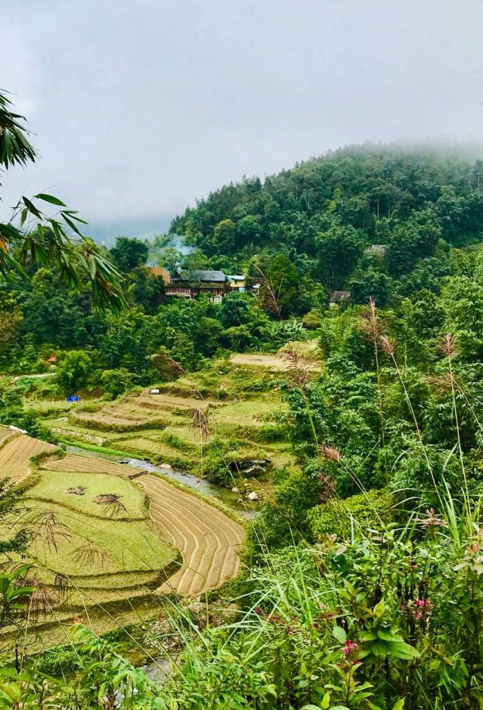 The Sa Pa trekking experience has been happening for 30-40 years but the Red Dzao tribe has only opened their villages and began guiding in the last decade. Most of their villages are made up of less than 15-20 families and the homes and adjacent rice terraces have been in the families for 100’s of years. We had the chance to see and visit three traditional homes on our trek, lunch the first day was served by her cousin at her home. They served us a beautiful meal consisting of four dishes, chicken with mixed vegetables, pork with garlic and spinach, morning glory with garlic and chili and rice. All fresh from their gardens or picked in the surrounding fields. Chickens and pigs are their own stock as well.
