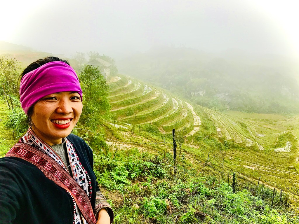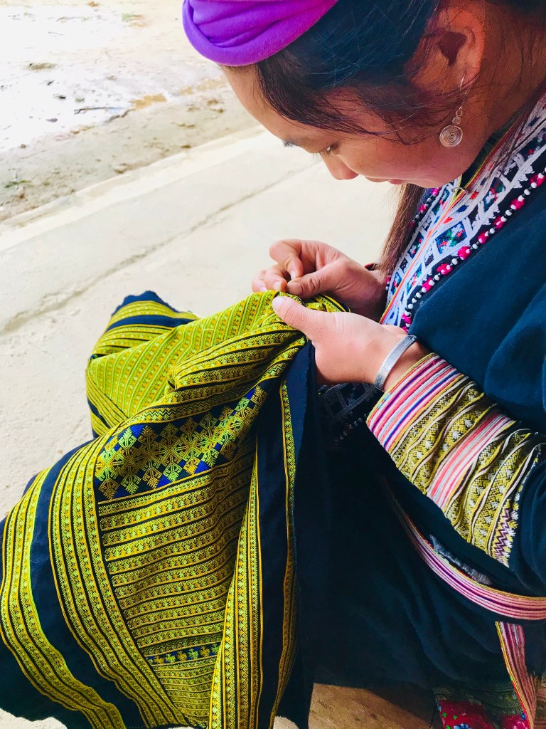 The van trip on up to Sa Pa was more eventful as Heidi watched her shoelaces rather than watch us passing on sharp hairpin corners with little regard for oncoming scooters, cars and buses. We both breathed a sigh of relief upon arrival to our meeting point with our guide. Sumai is a 26-year-old mother of two from the Red Dzao minority tribe that has inhabited this region for hundreds of years. Originally from China they made their way here during the Ming dynasty era when regional ethnic conflicts arose and they fled to northern Vietnam. The Red Dzao are known for their expertise with herbal medicines and their handiwork with needlecraft.