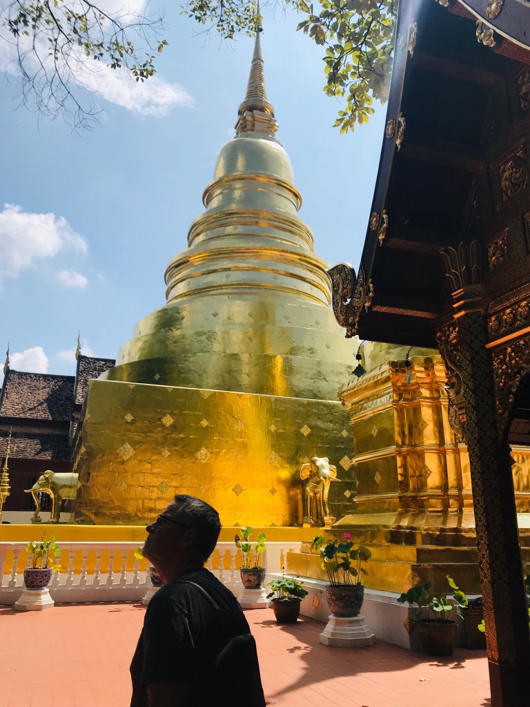This ancient city dates back to the 1200’s and is situated in the mountainous northern part of Thailand. If you think that means it isn’t as hot, no luck, still 30+ degrees and humid. We stayed in a neighbourhood close to downtown, which is the walled part of old town. We arrived on Sunday and luckily this was the night for their busiest market day called “Tha Pae Walking Street”. It was crazy busy with the local food, crafts and wares, but no cell phone cases, and charger stands like night markets in Vancouver and Bangkok. We wandered around for a few hours, ate our way up and down the many streets that make up the market and thoroughly enjoyed ourselves.