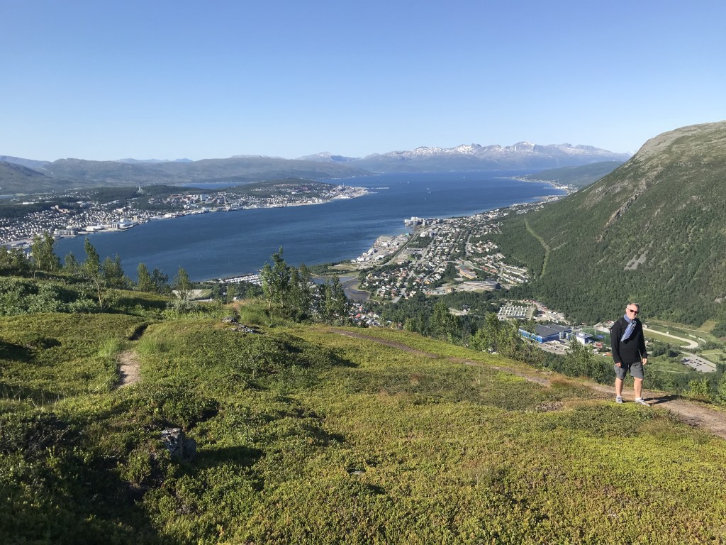 In Tromsø we hiked to the top of the lookout, (equivalent to climbing The Chief in Squamish) on a beautiful clear day and were treated to spectacular views of Tromsø and the surrounding mountains and fjord. The climb was so steep it would not have been possible without the installation of over 1200 massive rock stairs by Sherpas and Magar people from Nepal between 2016 and 2019.