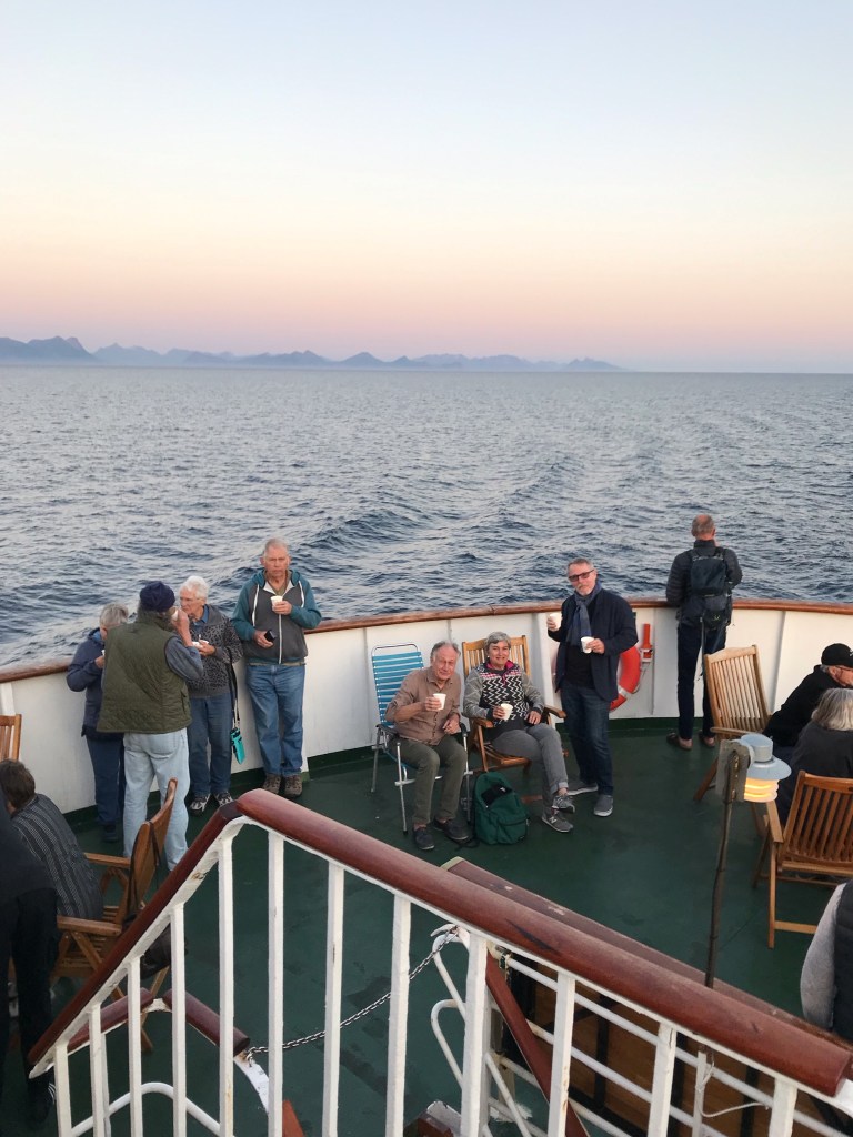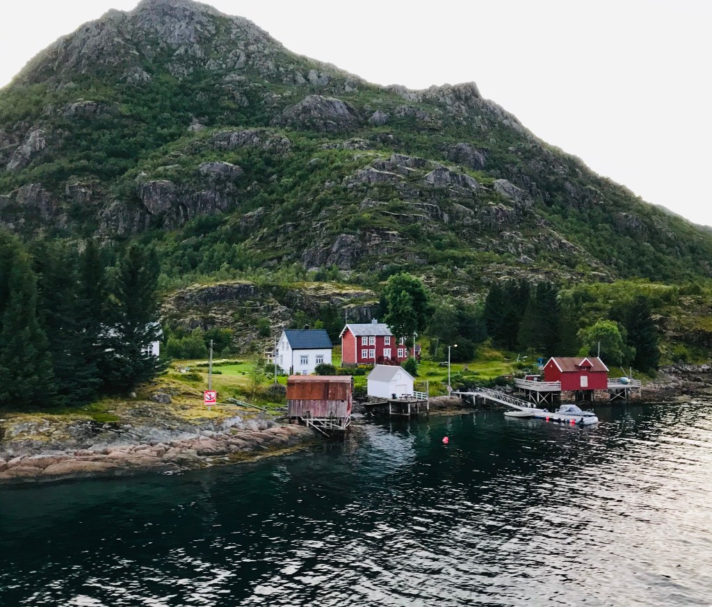 And our little ship is a little bit of a celebrity. The Norwegians, as I said previously are quite nostalgic. And many have childhood memories of sailing on the Lofoten or eagerly awaiting its arrival and what it might bring: mail, supplies and items ordered from catalogues or friends or relatives coming for a visit. Numerous times our ship would be cruising along the coast and motorboats or even jet skis would zoom out to meet us, ride alongside for a while and wave before heading back to shore. Other times we would notice people standing outside their very remote homes waving and even once we saw a whole group of children and adults performing the wave on shore for us!